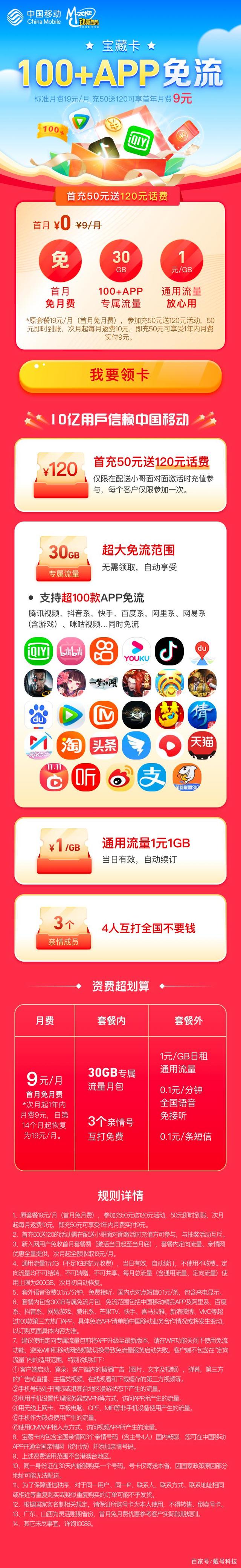 - 月租9元以下手机卡套餐